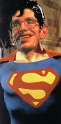 And they're off... "Wheeeeeeeeee!" says Stephen in a dull monotone. "Forward, forward and away!" shouts Christopher Reeve. Down the mountainside they go, swerving around trees and reaching magnificent speeds, their wheels getting ever hotter under the strain. Suddenly, disaster - Christopher Reeve loses control and starts to head inexorably toward a cliff edge. 'That will teach the smug bastard' thought StephenHawkingMan in a dull monotone. Closer and closer the cliff edge was approaching. Christopher Reeve tried to regain control, but to no avail. Then suddenly, a robotic hand clamps on the side of his chair, and a dull monotone heroically announces "Don't worry, I will save you". He turns his head as many degrees as his condition would allow, and sees StephenHawkingMan putting the anchors on. But too late - Both figures fly off the edge of the cliff and plummet down into the middle of nowhere before vanishing from sight in the trees below. In a clearing they lay unconscious for hours. then... "Ow." said Stephen in a dull monotone. "Oh, you're alive. We have a problem here," points out Christopher Reeve. "The only way we will be saved is if one of us can go and get help. I nominate me." "No, either we both go or neither of us do" said Stephen in a dull monotone. Three days later, in a small chemist near the edge of the forest, Agneta the chemist woman is sitting pondering the mysteries of generic drugs over the name brands. Her thoughts are interrupted by a squeaking, rattling sound as if someone was pulling themselves along the floor using one hand, whist dragging a broken wheelchair and another person with the other. She looks down at the dishevelled figure who obviously hadn't slept for days. "Can I help you?" she asks. "Six tubes of Anusol and a puncture repair kit, please" says he in a dull monotone. |